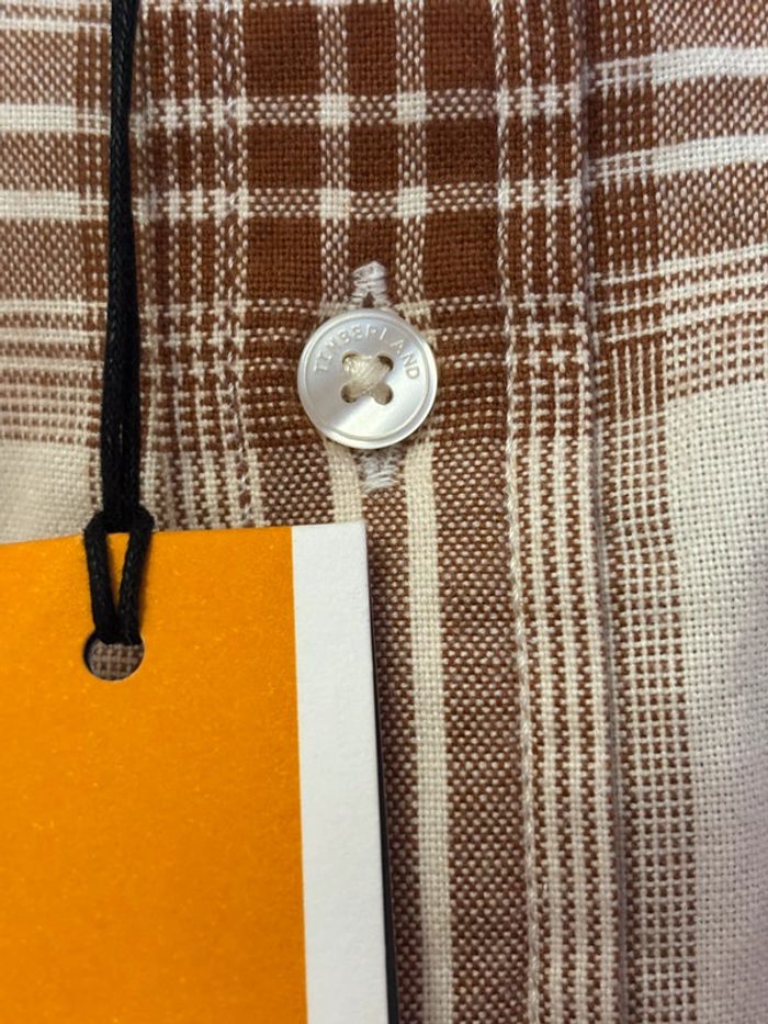 Neuve jamais portée avec étiquette d’achat Chemise homme Timberland Manches longues Taille S/P coupe regular fit Beige à carreaux marrons Une poche