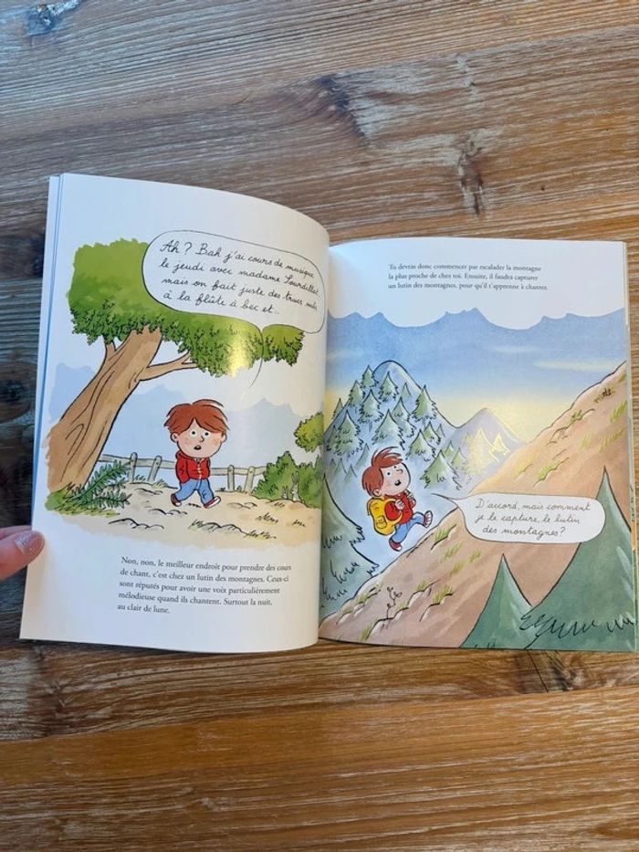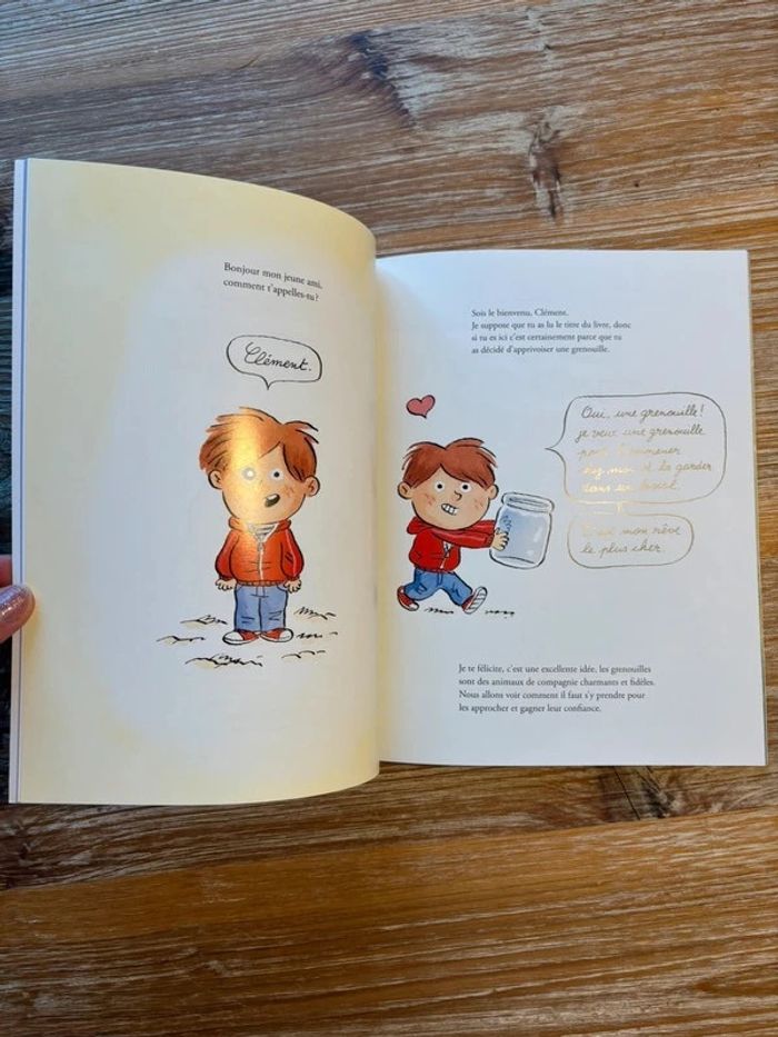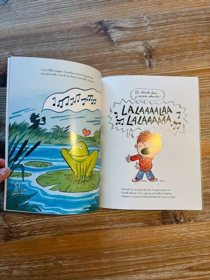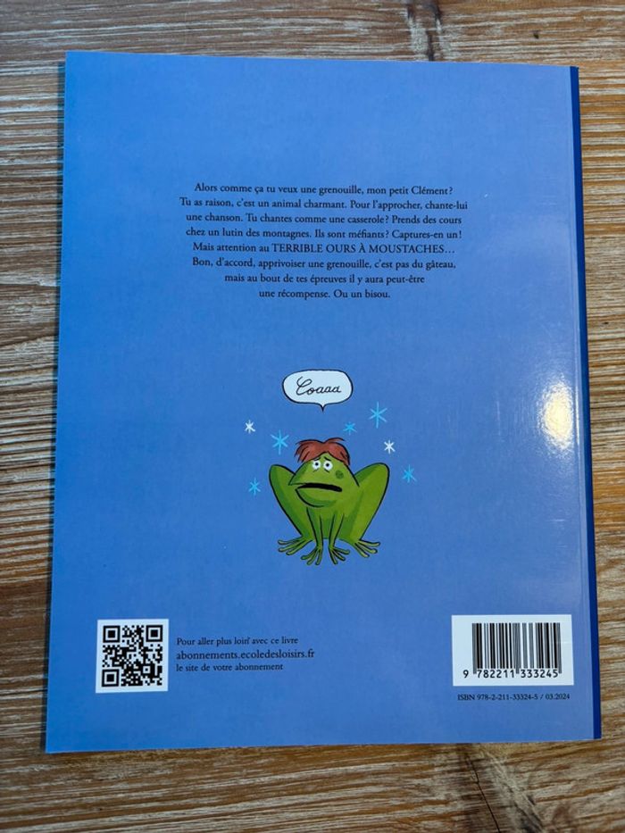 Livre école des loisirs Neuf jamais lu Comment apprivoiser une grenouille De Rudy Spiessert De 6 à 8 ans Histoire : Alors comme ça tu veux une grenouille, mon petit Clément ? Tu as raison, c’est un animal charmant. Pour l’approcher, chante-lui une chanson. Tu chantes comme une casserole ? Prends des cours chez un lutin des montagnes. Ils sont méfiants ? Captures-en un ! Mais attention aux ours à moustaches… Bon, d’accord, apprivoiser une grenouille, c’est pas du gâteau, mais au bout de tes épreuves, il y aura peut-être une récompense. Ou un bisou.