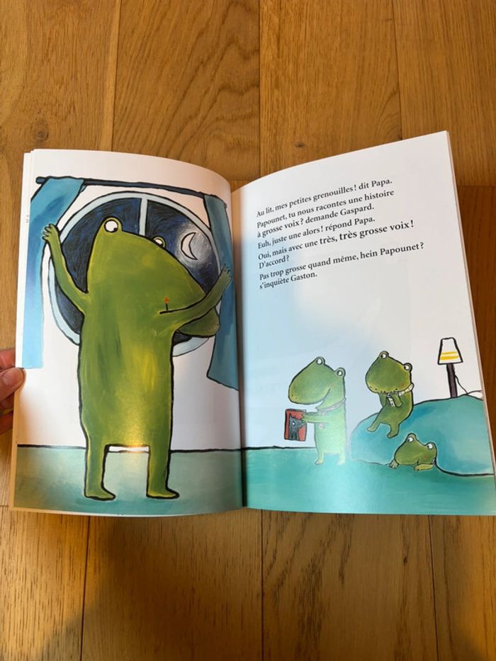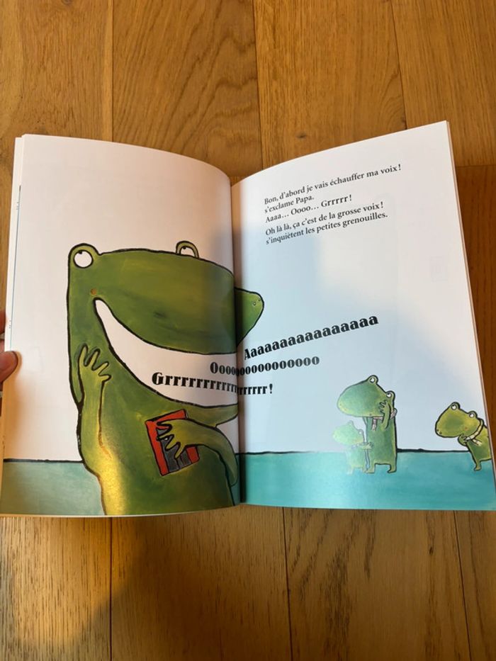 Lu une fois en très bon état Livre Minimax écoles des loisirs Une histoire à grosse voix Niveau Moyenne section J’ai laissé l’étiquette pour ne pas abîmer le livre Histoire : « Dis Papounet, tu nous racontes une histoire à grosse voix ? » demandent les trois petites grenouilles installées dans le grand lit. Papa doit d’abord échauffer sa voix, puis éteindre la lumière. « Oh là là, quelle grosse voix, s’inquiètent les enfants. Où est mon doudou ? Et si on allumait une petite lampe… »
