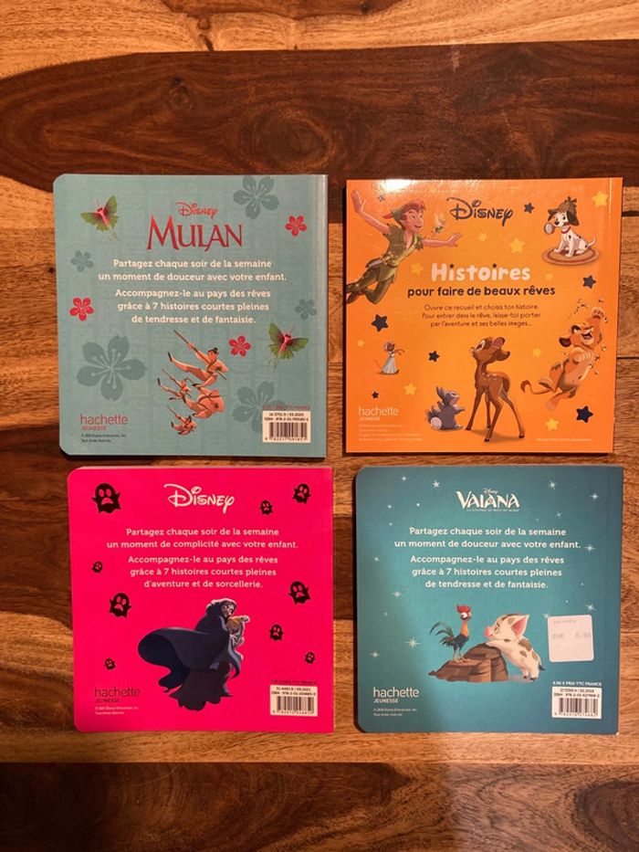 ⛔️ PAS d’envoi avec Vinted Go merci ! PRIX FERME MERCI ! 3 livres 7 histoires pour la semaine Disney + 1 livre histoires pour faire de beaux rêves - Les sorcières (neuf jamais lu) - Vaiana (neuf jamais lu) - Mulan (très bon état lu une fois) - Histoire pour faire de beaux rêves (neuf jamais lu)