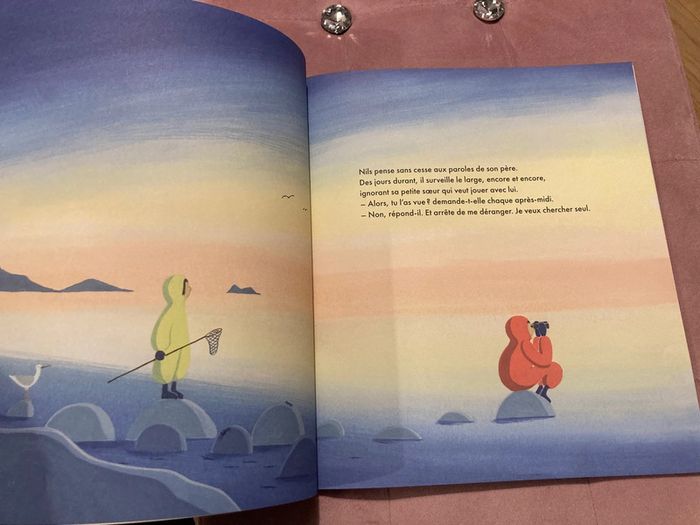 Neuf jamais lu Livre Kilimax écoles des loisirs La mystérieuse baleine Niveau CP J’ai laissé l’étiquette pour ne pas abîmer le livre 31 pages Valeur 13€ Histoire : Par une nuit étoilée dans le Grand Nord, un père raconte à ses enfants, Nils et Anna, blottis autour d'un feu, l'histoire d'une baleine gigantesque qui rôdait jadis dans les eaux environnantes. Captivé, Nils en rêve toutes les nuits. Il n'a qu'une obsession désormais : partir à sa rencontre ! Un matin, il embarque en catimini dans le kayak paternel. Soudain, sa sœur surgit au milieu des eaux. Contrarié, Nils se voit obligé de composer avec cette coéquipière têtue et bavarde. Inconsciente du danger, Anna est une vraie casse-cou, ce qui contraint Nils à garder l'œil sur elle. C'est finalement la présence bruyante de sa sœur qui leur permet de rencontrer le fameux mammifère !