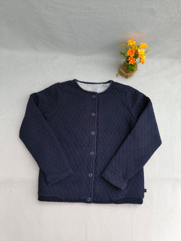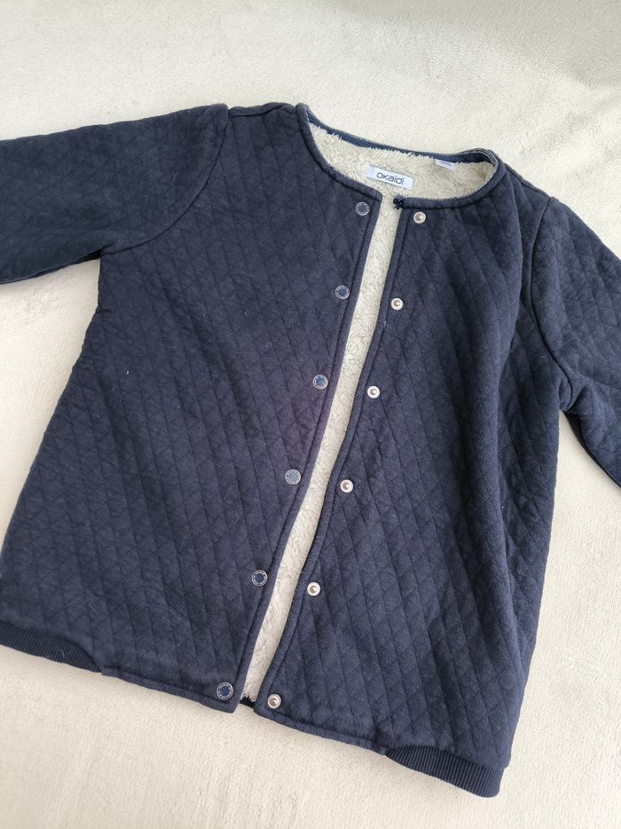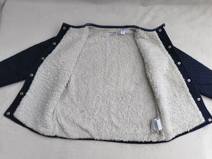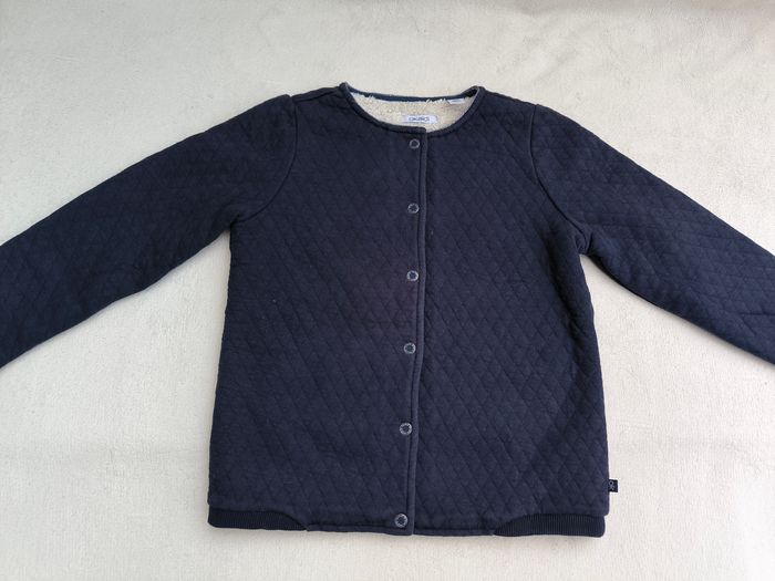 Gilet d'hiver à manches longues Marque Okaïdi Taille 10 ans, 140 cm • Coloris marine • Fermeture par pressions • Intérieur polaire, fourré • Coton • Liseré col abîmé En très bon état #evelyne_filles_10ans #evelyne_filles