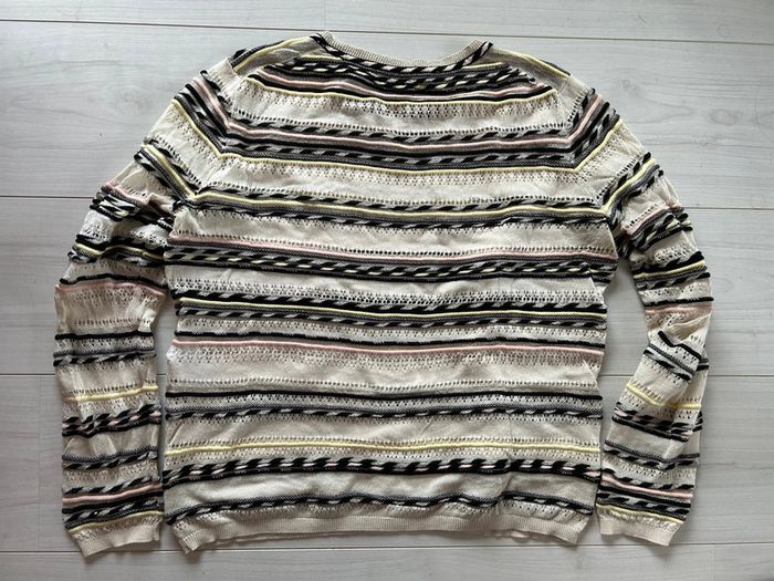 Pull Maje T. 3 rayures écru noir rose jaune - photo numéro 1