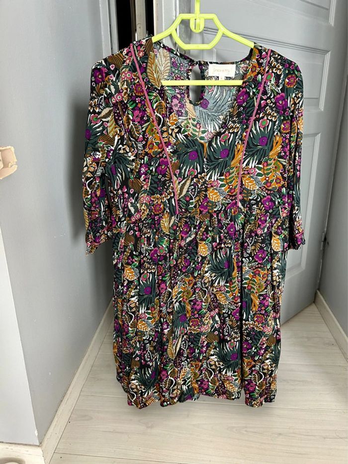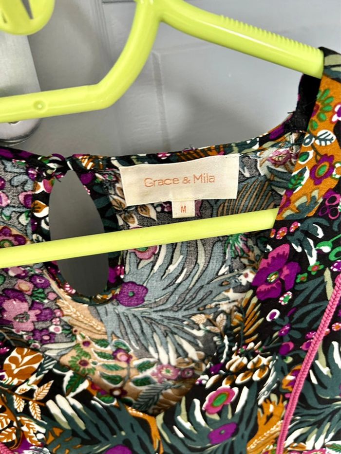 Robe courte Grace & Mila avec doublure Modèle Rawane imprimé fleuri noir rose violet vert Taille M - 38/40 Neuve jamais portée #graceetmila