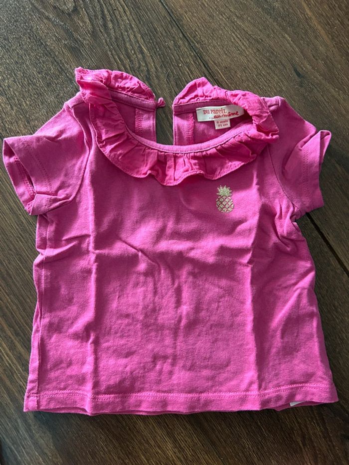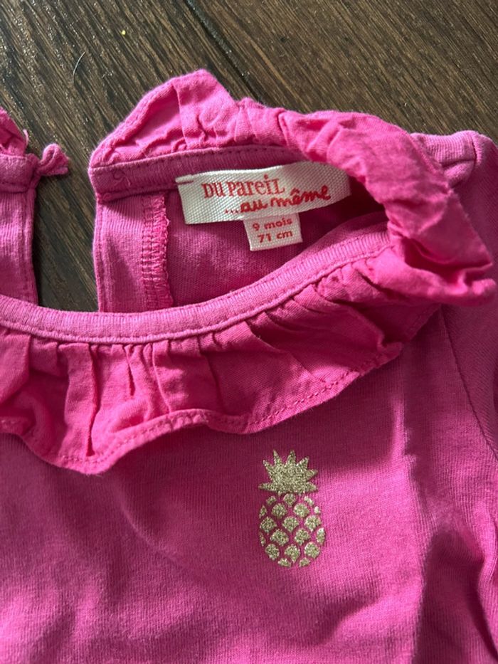 T shirt DPAM du pareil au même manches courtes Taille 9 mois / 71 cm Coloris rose fuchsia avec motif ananas doré En parfait état