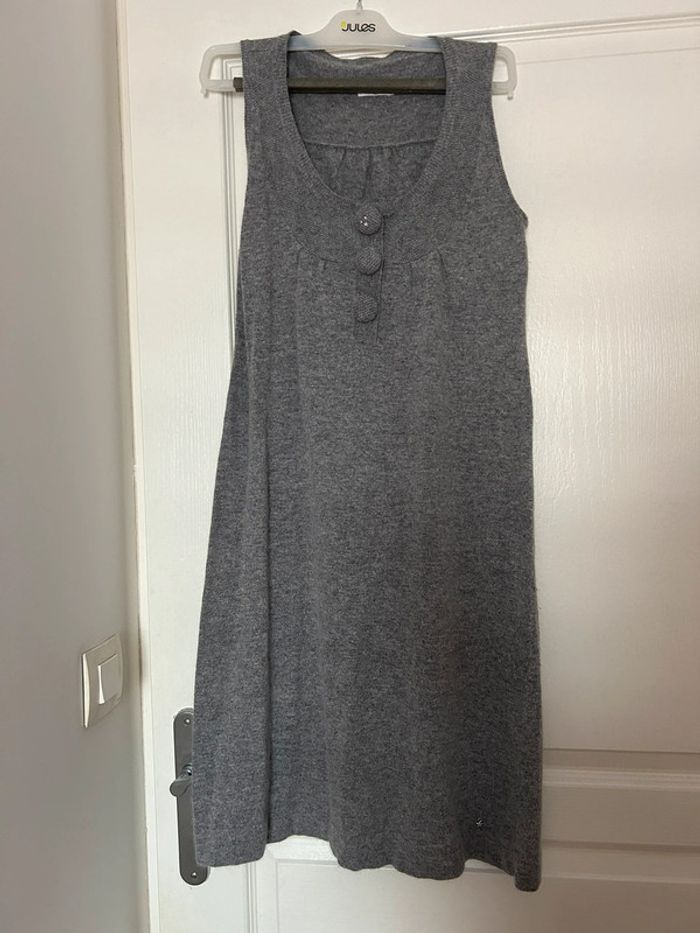 Robe sans manches Des Petits Hauts Taille 2 De couleur gris chiné Contient de la laine et de l’angora En très bon etat
