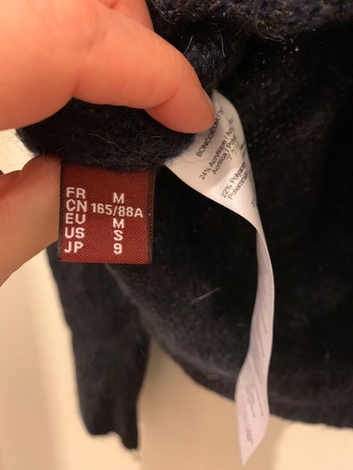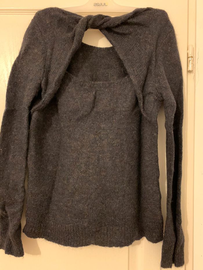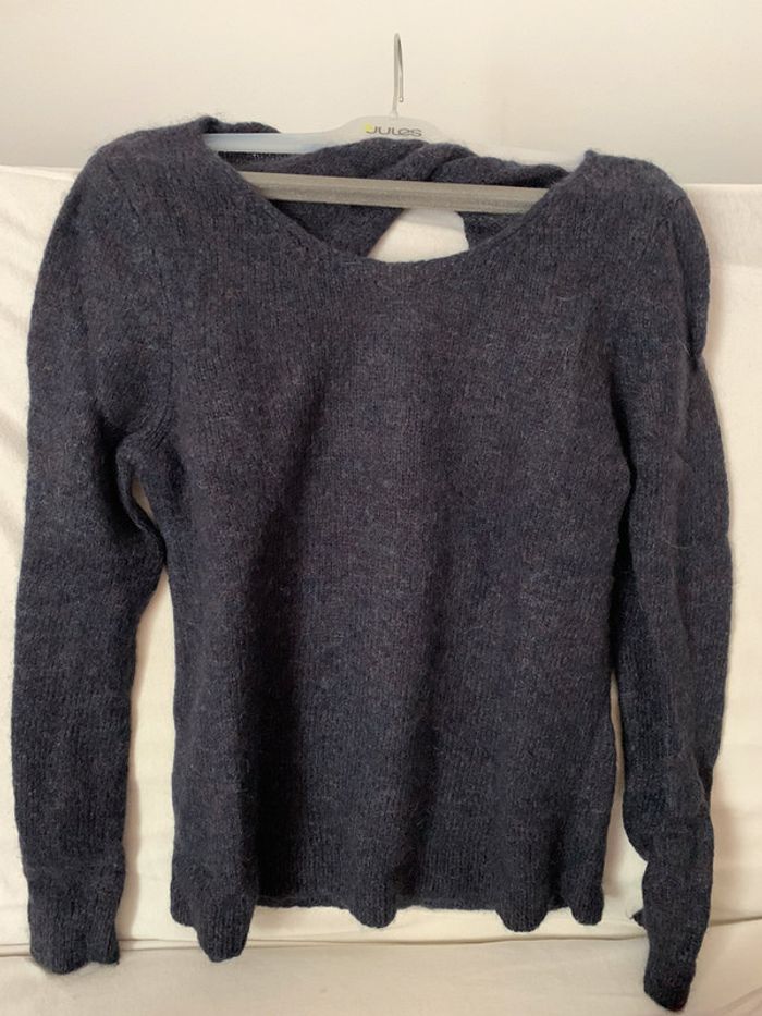 Pull en laine mélangée (laine mohair) Comptoir des cotonniers modèle Boncoeur Taille M couleur bleu nuit Découpe dans le dos, encolure bateau en parfait état #comptoirdescotonniers