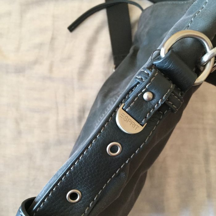 Sac Esprit Bandoulière réglable et détachable : elle peut se mettre à 2 endroits différents (cf. photos) De couleur gris (tirant légèrement sur le vert) Dimensions : 38x31cm En parfait état, jamais servi #esprit #sac