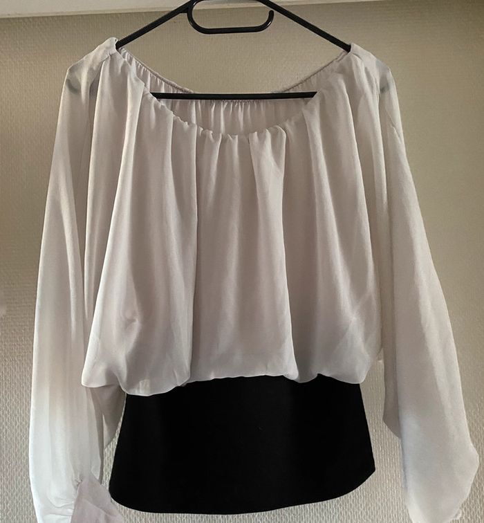 Blouse à boutons à manches Bishop / Très bon état (il y a juste une petite tache au niveau du bras, voir dernière photo) 🚨 Taille M #femmelaetitiah54 #haut #blouse #bishop #