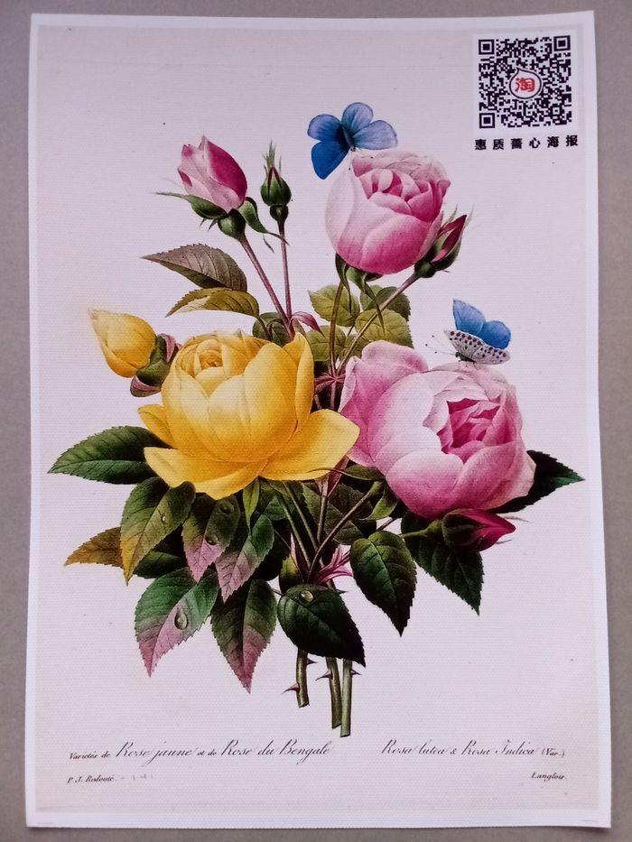 AFFICHE POSTER TOILE INFÉRIEURE A4 FLEURS ROSES