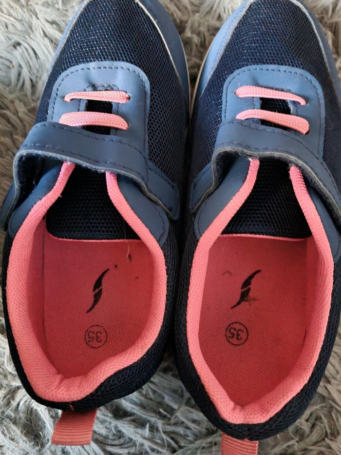 Basket de sport marine et rose,pointure 35,à scratch et faux lacets élastique, comme neuf porté 1-2fois.