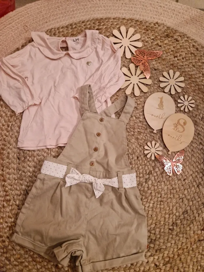 Ensemble t-shirt rose et robe beige obaïbi bébé fille 18 mois