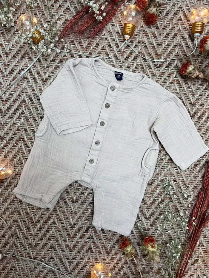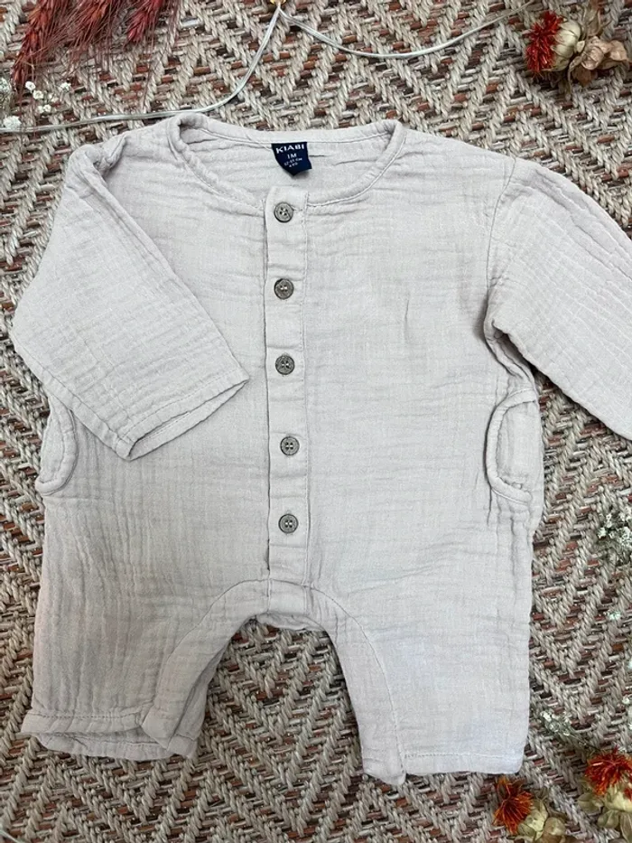 Combinaison en gaze de coton légère Kiabi Mixte 1 mois Très bon état, 2 petites tâches signalées dans les photos 🐣 Envoi rapide et soigné - Plein d’autres vêtements bébé - Réductions sur les lots 🐣 Dressing trié par tailles dans à propos #JJleMac_1mois