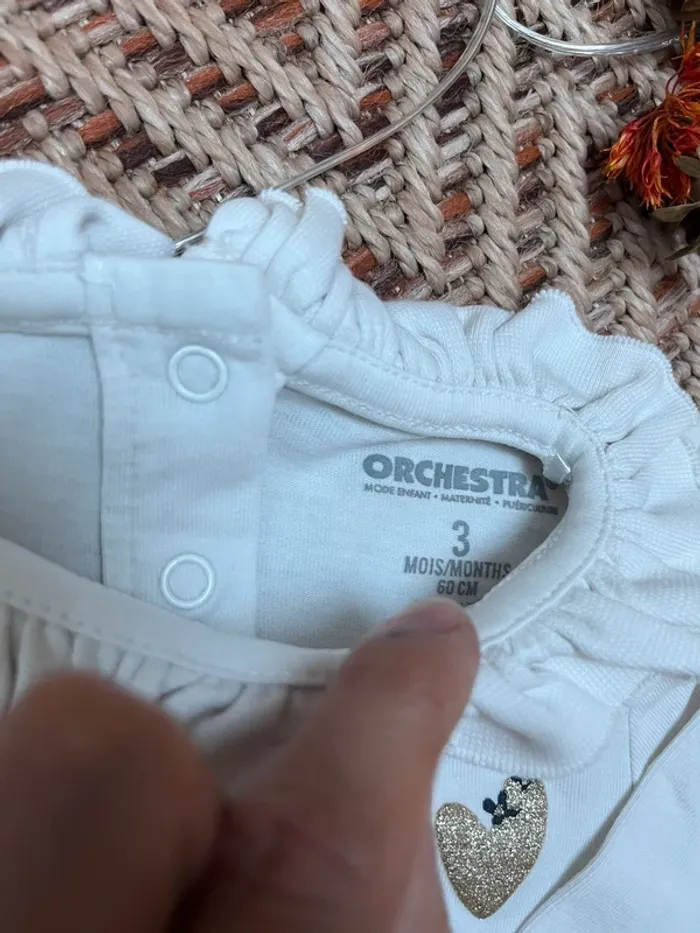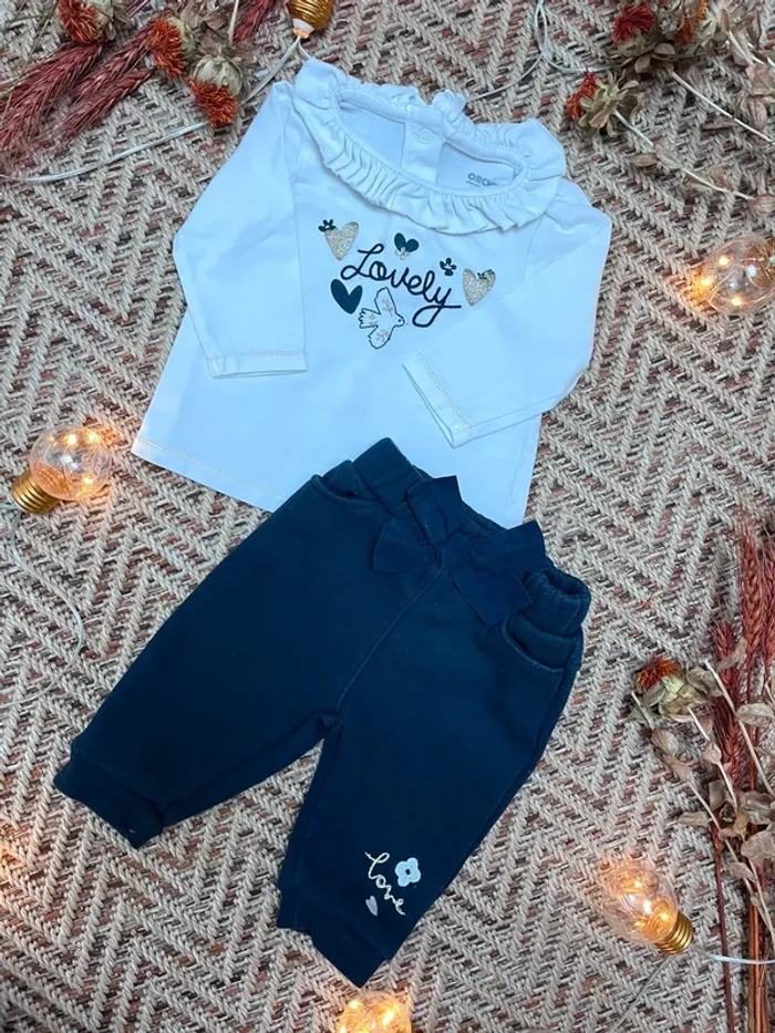 Tenue composée d’un t-shirt manches longues avec un col et son petit jogging molletonné assorti. Orchestra 3 mois Très bon état 🐣 Envoi rapide et soigné - Plein d’autres vêtements bébé - Réductions sur les lots 🐣 Dressing trié par tailles dans à propos #JJleMac_3mois