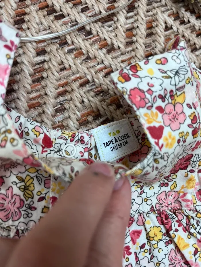 Tenue composée de : - une blouse fleurie à manches courtes, Tape à l’œil - un legging rose, Kiabi Taille 3 mois Très bon état Robe rose pâle avec col Claudine en dentelle Toute douce Kiabi 3 mois Neuve juste lavée 🐣 Envoi rapide et soigné - Plein d’autres vêtements bébé - Réductions sur les lots 🐣 Dressing trié par tailles: #JJleMac_3mois