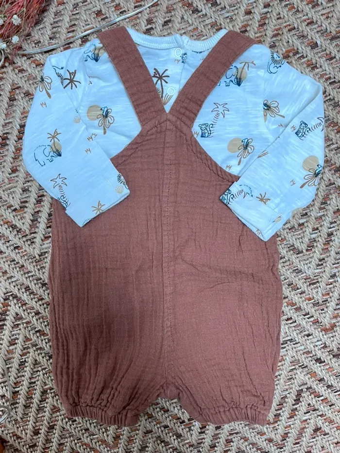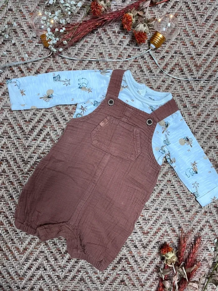 Tenue composée de : - un t-shirt manches longues léger - une salopette short en gaze de coton Vertbaudet 3 mois Très bon état 🐣 Envoi rapide et soigné - Plein d’autres vêtements bébé - Réductions sur les lots 🐣 Dressing trié par tailles dans à propos #JJleMac_3mois