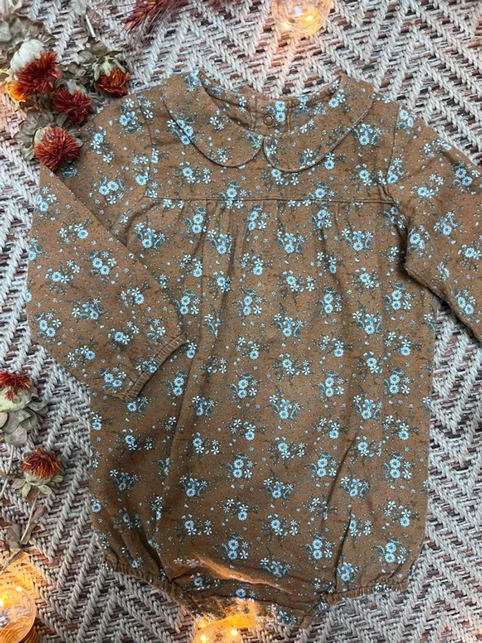 Barboteuse fleurie marron avec col Claudine Vertbaudet 18 mois Excellent état 🐣 Envoi rapide et soigné - Plein d’autres vêtements bébé - Réductions sur les lots 🐣 Dressing trié par tailles dans à propos #JJleMac_18mois