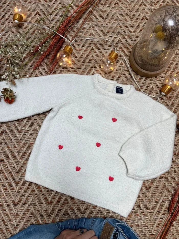Tenue en 12 mois composée de : - un pull tout doux et chaud, blanc avec des cœurs. Kiabi. Bouloche un peu - un jean bleu, tape à l’œil, très bon état 🐣 Envoi rapide et soigné - Plein d’autres vêtements bébé - Réductions sur les lots 🐣 Dressing trié par tailles dans à propos #JJleMac_12mois