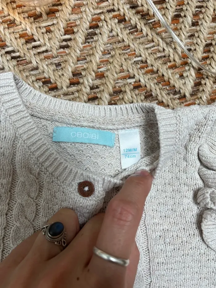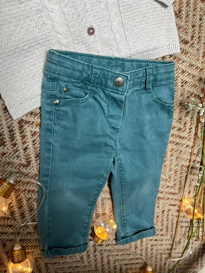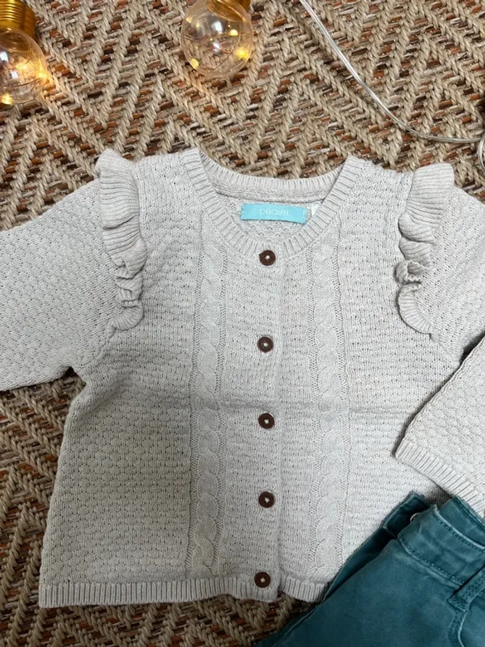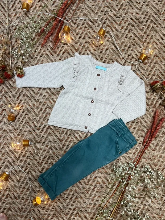 Tenue en 12 mois, composée de : - un gilet en maille beige Obaibi - un pantalon type jean Tape à l’œil En très bon état 🐣 Envoi rapide et soigné - Plein d’autres vêtements bébé - Réductions sur les lots 🐣 Dressing trié par tailles dans à propos #JJleMac_12mois