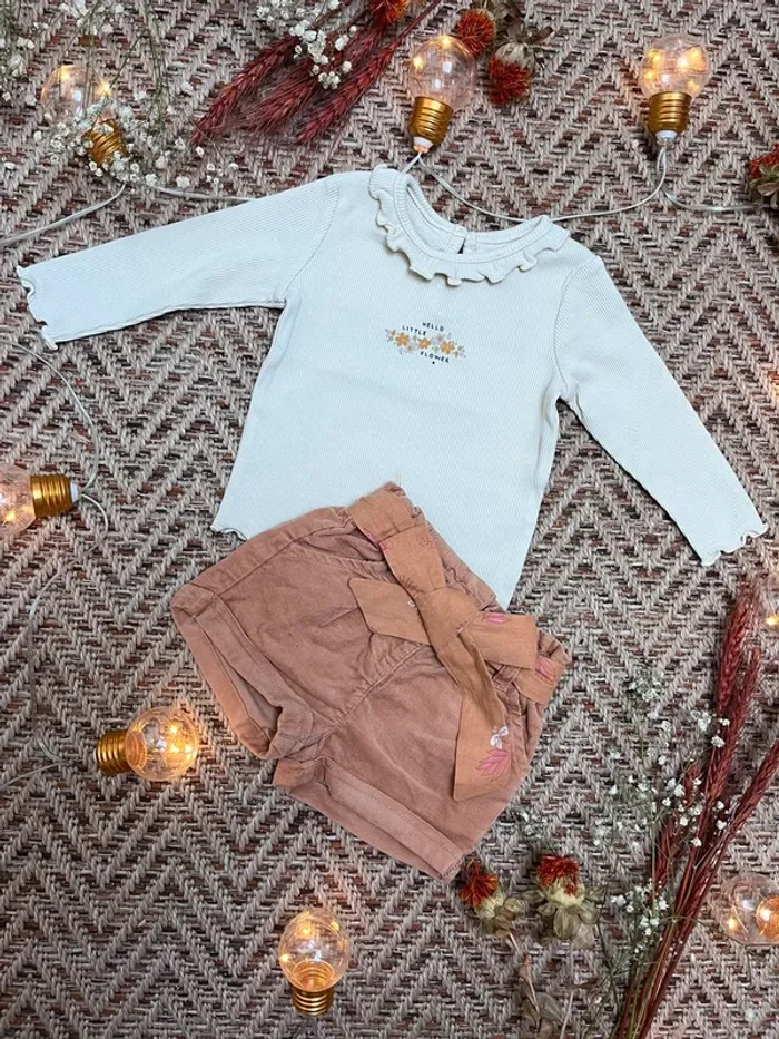 Tenue composée d’un : - T-shirt côtelé Kiabi - short en velours côtelé Tape à l’œil 3 mois Très bon état 🐣 Envoi rapide et soigné - Plein d’autres vêtements bébé - Réductions sur les lots 🐣 Dressing trié par tailles dans à propos #JJleMac_3mois