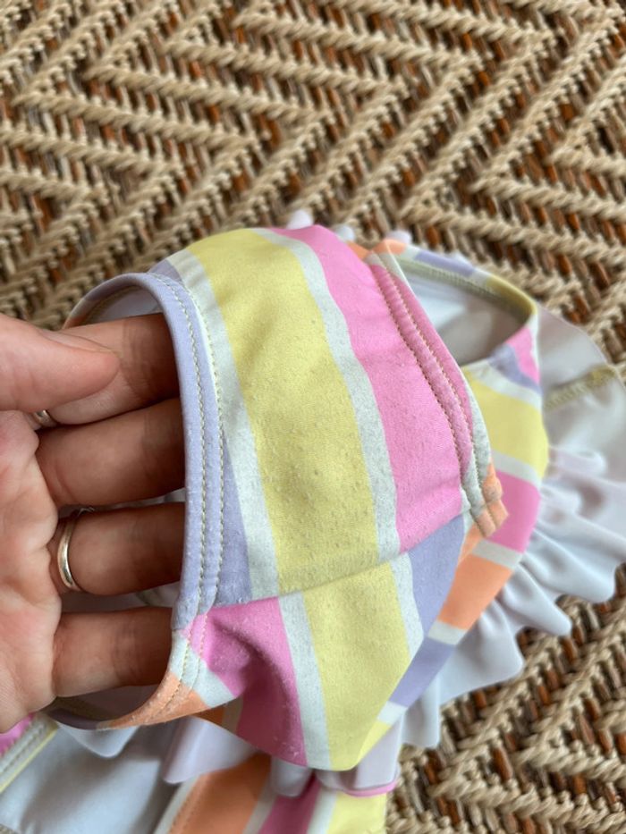 Maillot de bain 1 pièce à rayures, coloré Kiabi 12 mois Un peu bouloché a l’entrejambe à cause d’un scratch… sinon en très bon état, porté 2 fois 🐣 Envoi rapide et soigné - Plein d’autres vêtements bébé - Réductions sur les lots 🐣 Dressing trié par tailles dans ma bio / #JJleMac_12mois
