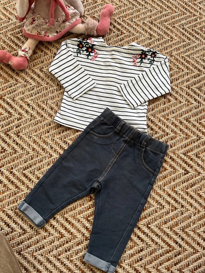 Ensemble : - t-shirt marinière à manches longues, fleuri. Bout’chou - legging imitation jean / jegging, Kiabi 6 mois Très bon état 🐣 Envoi rapide et soigné - Plein d’autres vêtements bébé - Réductions sur les lots 🐣 Dressing trié par tailles: #JJleMac_6mois