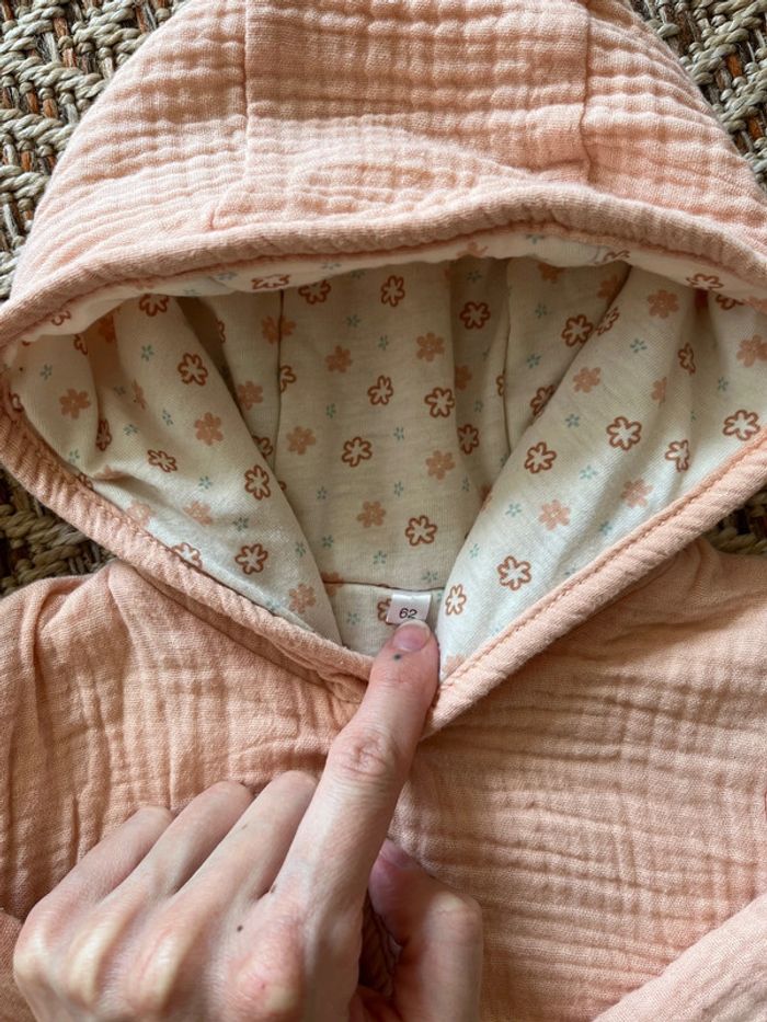 Gilet à capuche en gaze de coton Rose pâle et fleuri à l’intérieur Zeeman 3 mois Bon état, pas mal porté 🐣 Envoi rapide et soigné - Plein d’autres vêtements bébé - Réductions sur les lots 🐣 Dressing trié par tailles: #JJleMac_3mois