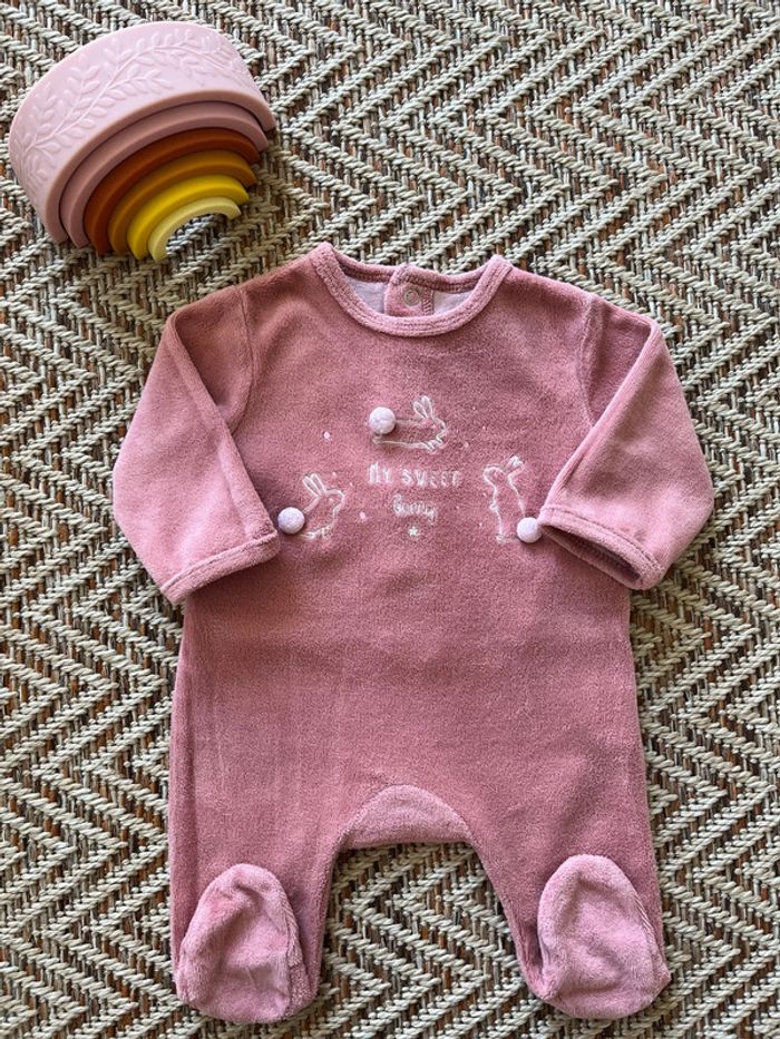 Pyjama en velours couleur vieux rose Ouverture par pressions à l’arrière Kiabi 1 mois Très bon état 🐣 Envoi rapide et soigné - Plein d’autres vêtements bébé - Réductions sur les lots 🐣 Dressing trié par tailles: #JJleMac_1mois