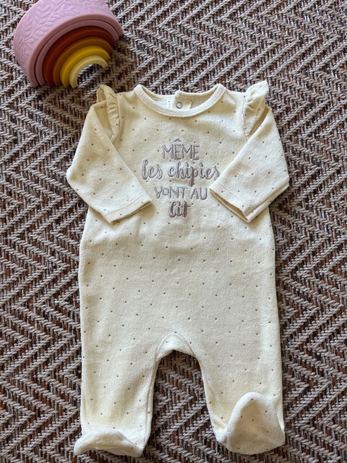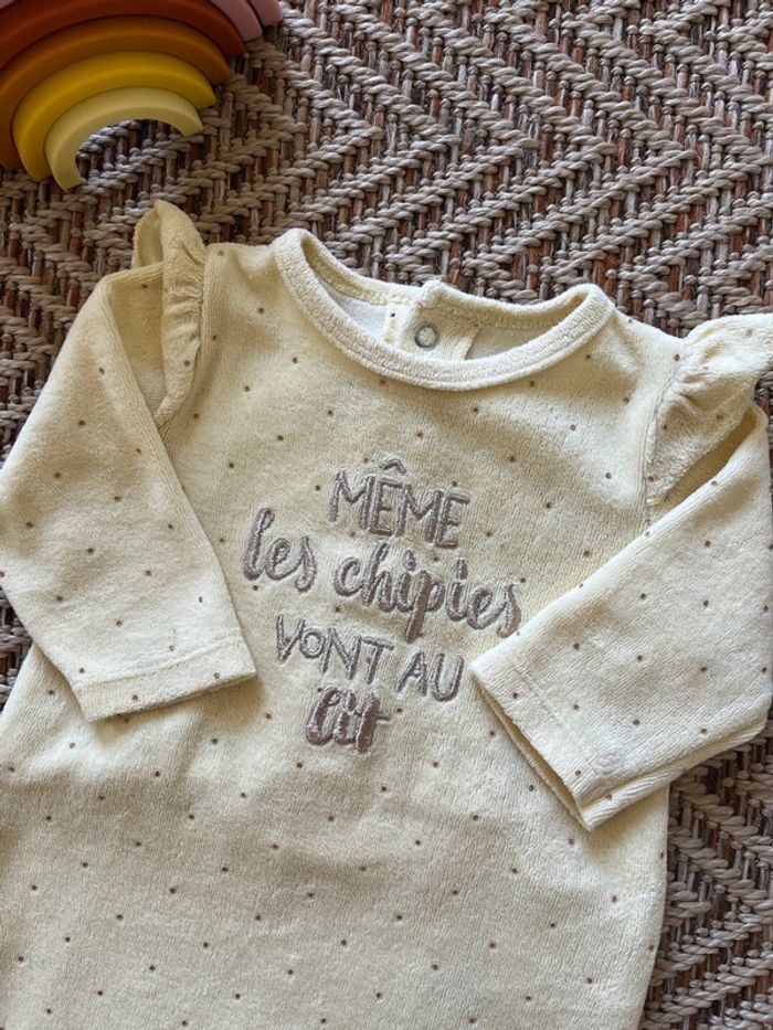 Pyjama en velours jaune poussin Ouverture par pressions à l’arrière Gemo 1 mois Très bon état 🐣 Envoi rapide et soigné - Plein d’autres vêtements bébé - Réductions sur les lots 🐣 Dressing trié par tailles: #JJleMac_1mois
