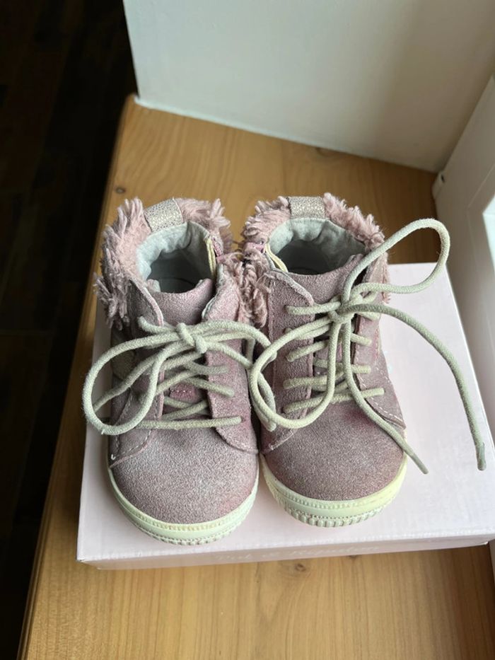 Chaussures type baskets bébé en cuir / daim rose Taille 19 Pat et Ripaton Peu portées mais stockées depuis longtemps 🐣 Envoi rapide et soigné - Plein d’autres vêtements bébé - Réductions sur les lots 🐣 #JJleMac_ChaussuresBébé