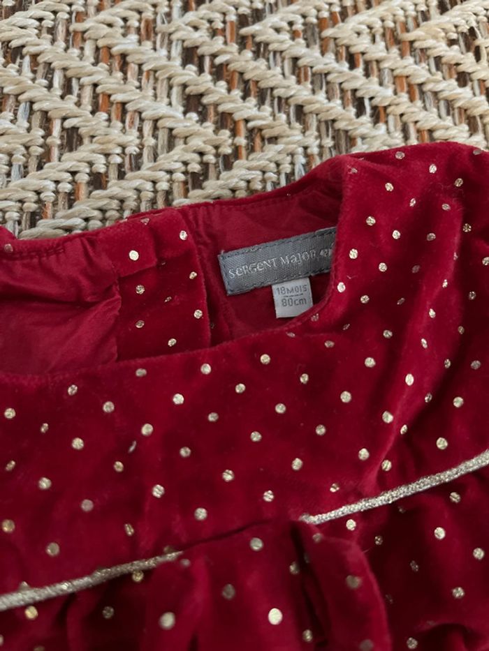 Robe en velours rouge et dorée Bien épaisse, parfaite pour Noël par exemple Taille 18 mois Très bon état 🐣 Envoi rapide et soigné - Plein d’autres vêtements bébé - Réductions sur les lots 🐣 #JJleMac_18mois
