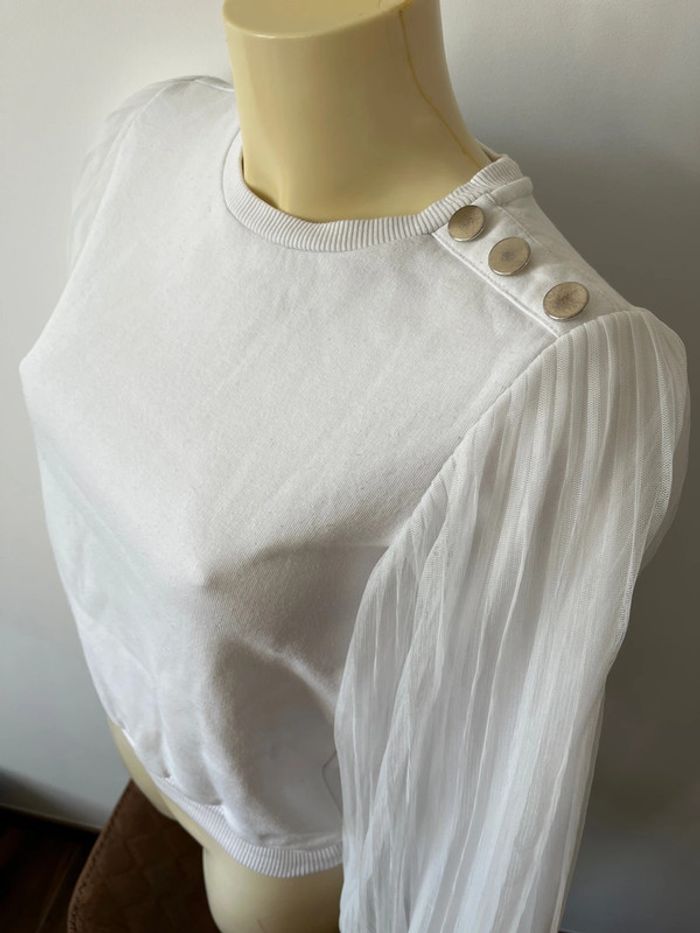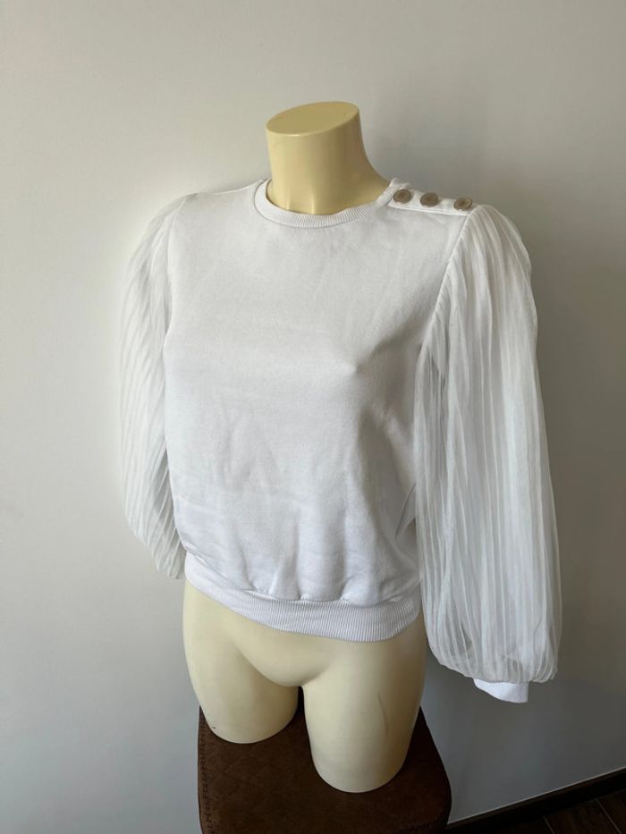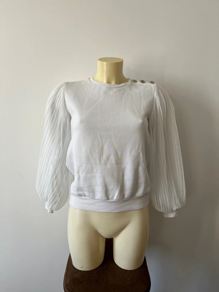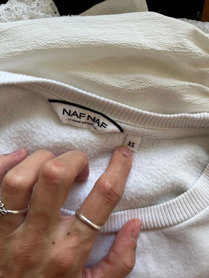Joli pull avec manches bouffantes Naf Naf XS Pas mal porté, quelques bouloches mais rien de méchant Très bon état
