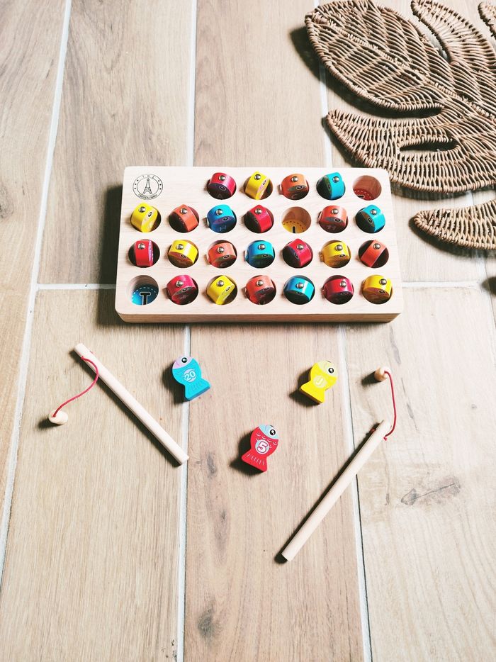 🐟 Pêche à la ligne magnétique en bois 3 en 1 avec alphabet et chiffres JB1702 🎀Convient dès l'âge de 2 ans 🎀Une superbe partie de pêche s'engage c'est parti. Attrapez les petits poissons avec les cannes à pêche aimantées. 🎀Apprendre l'alphabet ou à compter tout en jouant 🎀Objectifs ▶️Dextérité, motricité fine ▶️Coordination main/oeil ▶️Reconnaissance des couleurs ▶️Apprendre l'alphabet et à compter ❇️N'hésitez pas à créer un lot pour économiser sur les frais de port❇️ Premier âge, Jouet bébé, Jouet d'activité, Jouet ludique, Jouet eveil, Mémorisation, Memoire, aptitude, motricité, jeu Adresse, Montessori, jeu bois, Jouet bois, Jouet vintage, Jeu adresse, jeu apprentissage, dextérité, jeu sensorielle, jeu educatif, activités et Jouet pour bébé, trier empiler, encastrer, jeux et jouets