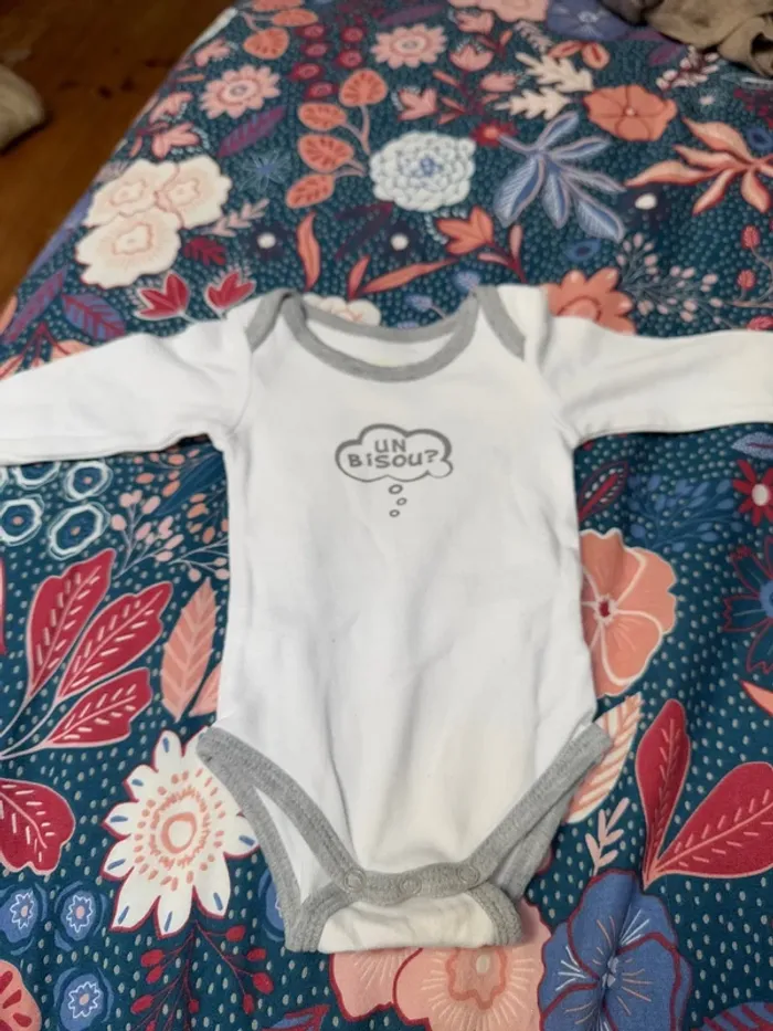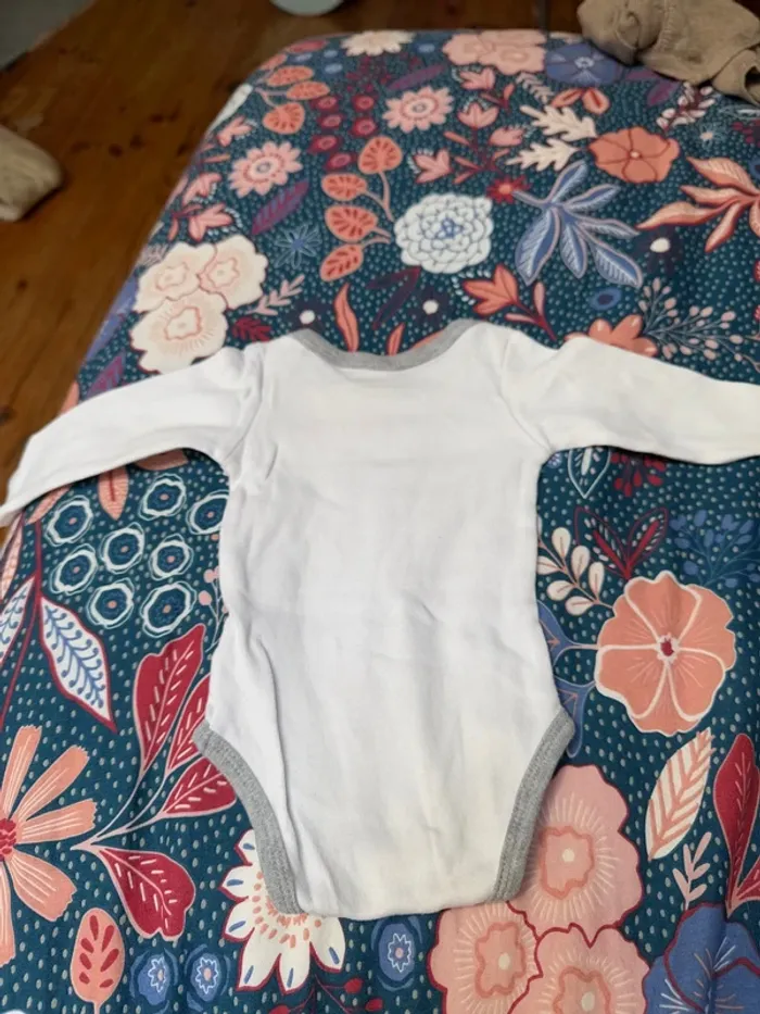 Body manches longues blanc et gris, taille 3 mois, marque H&M, neuf sans étiquette #bebegarcon3moisclaiiire34