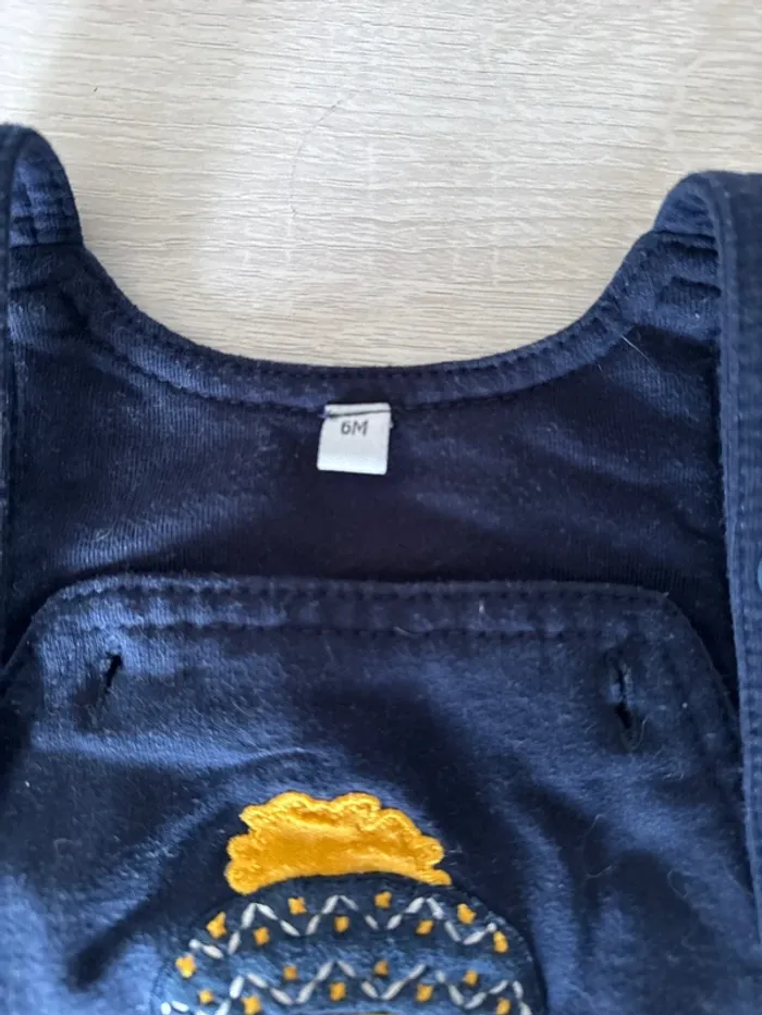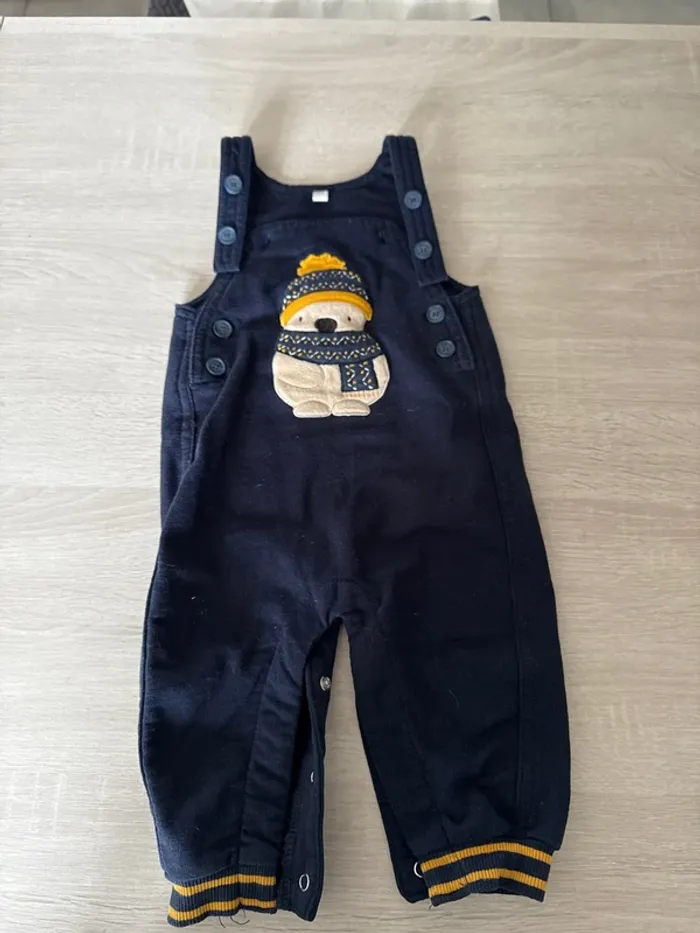 Salopette bleu marine avec ours devant, en très bon état, taille 6 mois #bebegarçon6moisclaiiire34