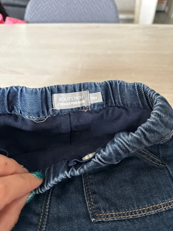 Jean bleu foncé, en très bon état, taille 9 mois, marque bout’chou #bebegarcon9moisclaiiire34
