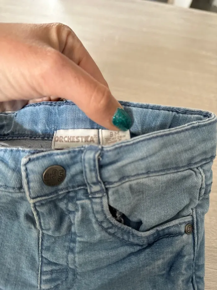 Jean bleu clair, en très bon état, taille 9 mois, marque orchestra #bebegarcon9moisclaiiire34
