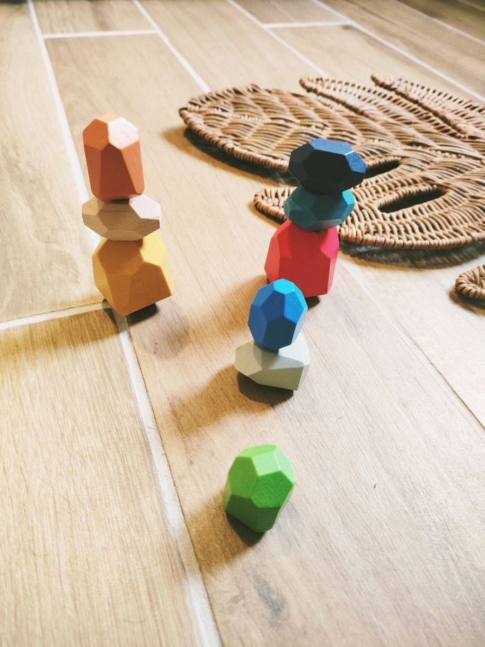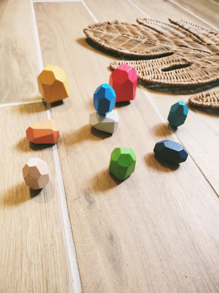 🪨Lot de 9 menhirs pierres multicolores à empiler/superposer en bois  - photo numéro 1