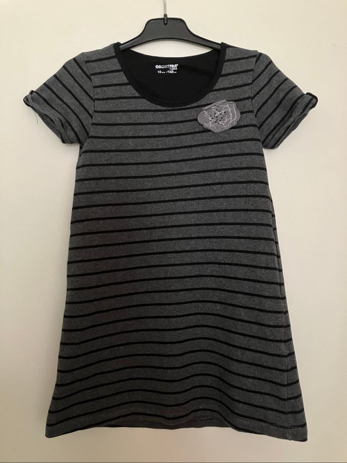 Robe ou tunique Orchestra notée 10 ans (140 cm) mais qui taille bien une taille de moins ~ 100% Coton ~ Largeur sous les bras: 33 cm / Longeur de 64 cm ~ Bon état ++ / Vendue 2€50 ~ Envoi soigné, autres habits disponibles et % activé sur les lots.