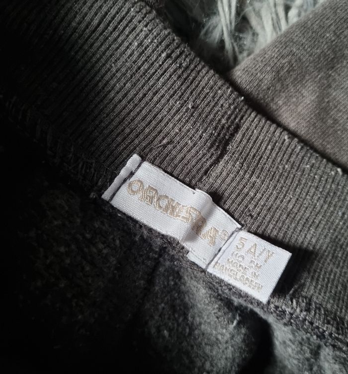 Pantalon de sport gris foncé ,taille 5ans marque Orchestra, vrais poches avant fausse poche arrière, élastique à la taille avec cordon, intérieur molletonnée.