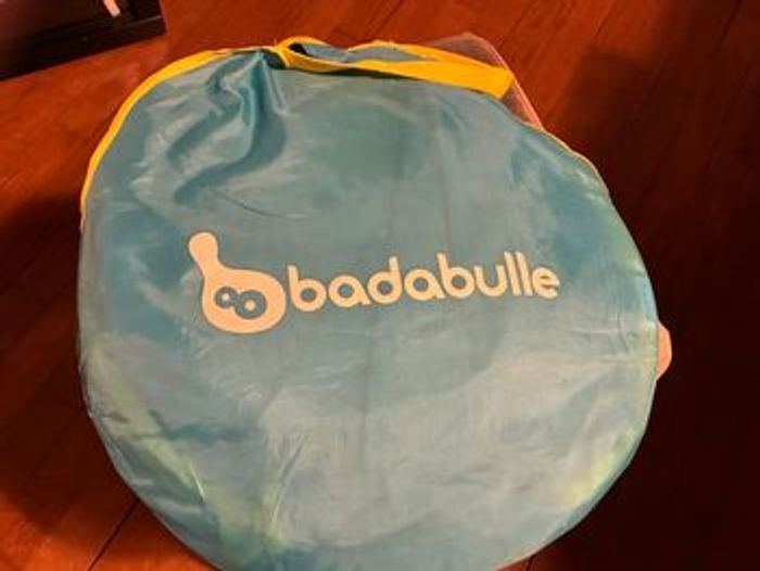 Tente anti uv marque Badabulle, idéale pour que vos petits bouts restent au frais lors de vos sorties au parc ou en vacances à la plage