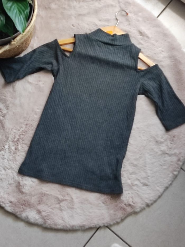 petit pull léger de chez jennyfer aux épaules dénudées et manches 3/4, un col montant. Peu porter. De la marque jennyfer en taille S