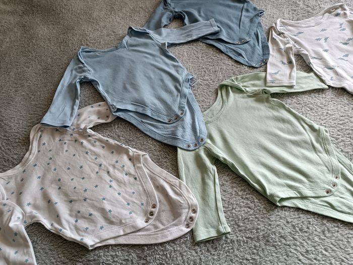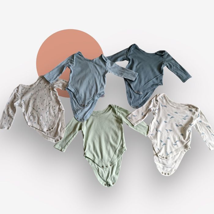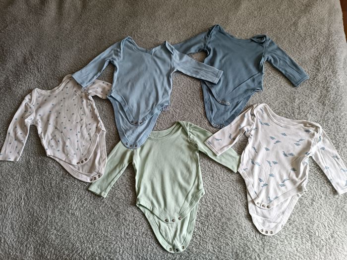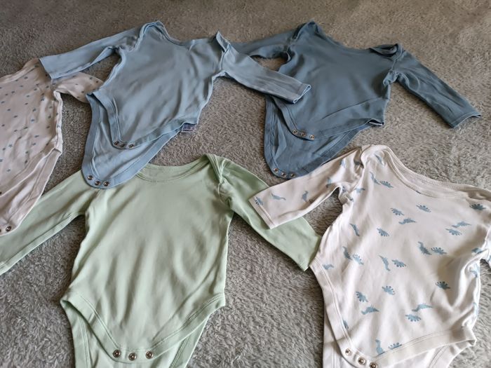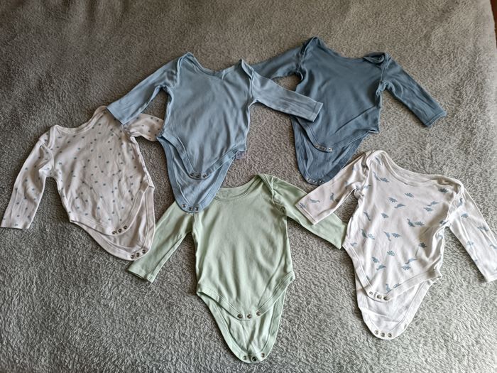 Lot de 5 bodies bébé garçon à manches longues, marque Primark, taille 18 mois.