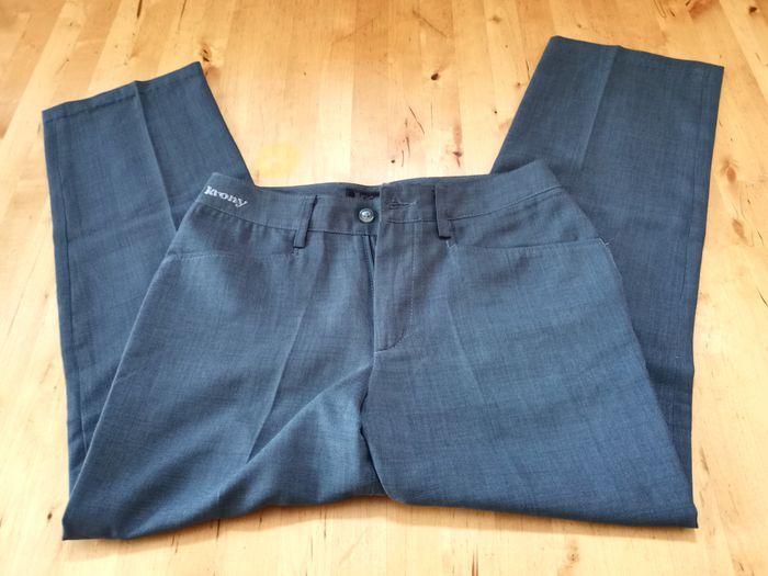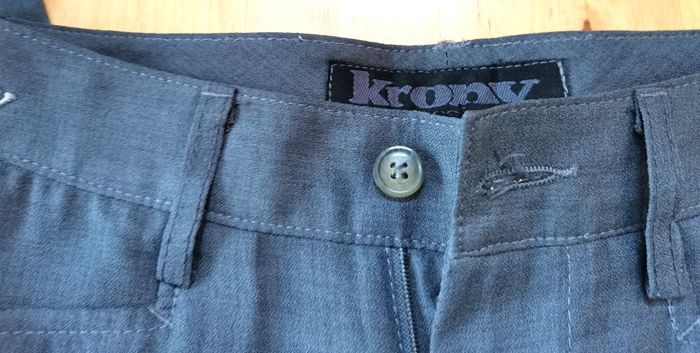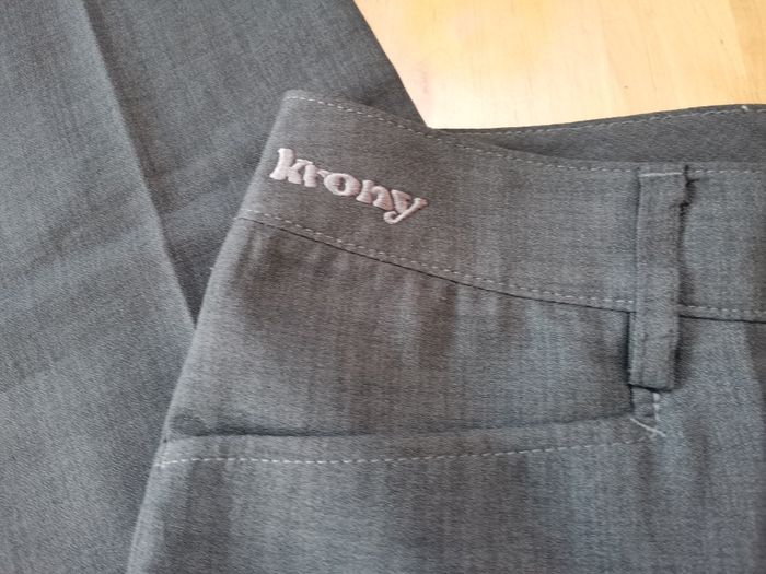 Pantalon "Krony", modèle cigarette, style habillé, en tissu couleur gris, poches devant, taille 34 (XS), tbé.