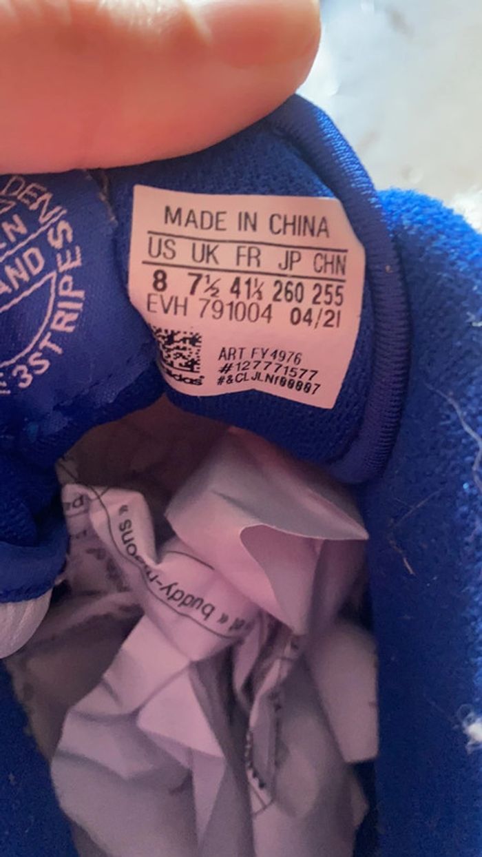 Je vends cette paire de chaussures/baskets Adidas montantes puisque je ne rentre plus dedans. Malheureusement je les ai déjà porté je veux les vendre pour me racheter les mêmes mais à ma taille. Pour l’état, voir les photos Vous pourrez changer les lacets et les laves à la machine. Mais interdit au retour