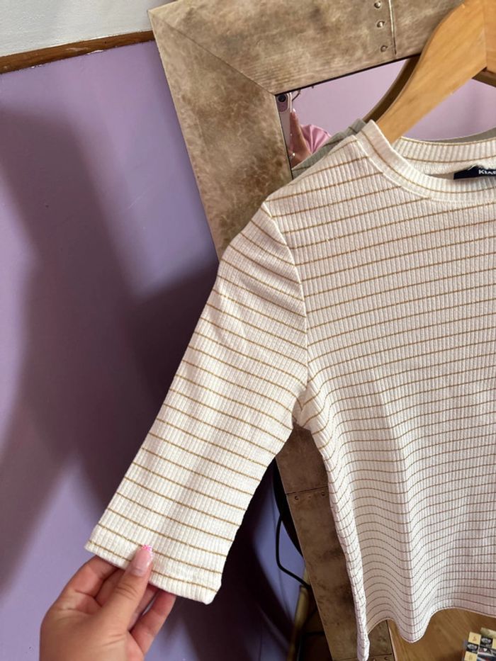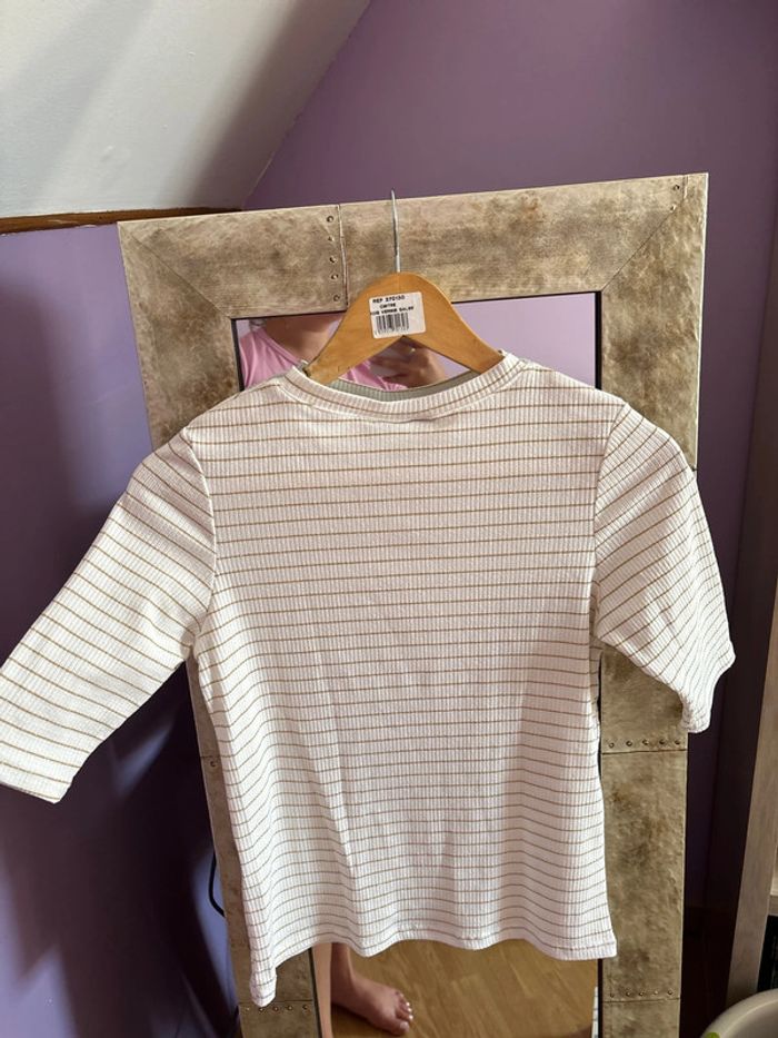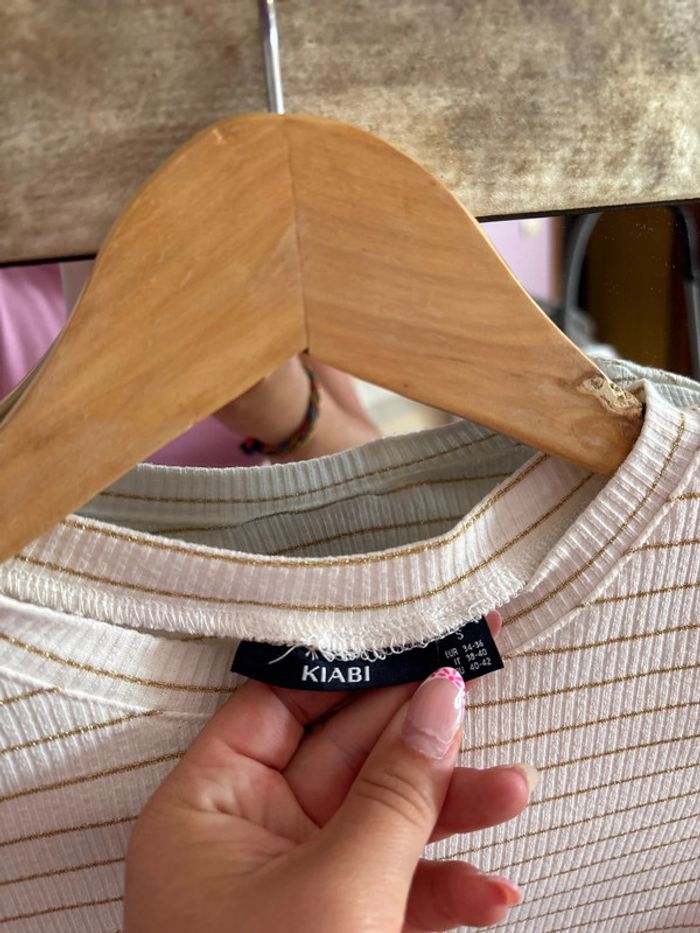 T-shirt blanc à fils dorés Kiabi taille S manches arrivant au coude Très bon état