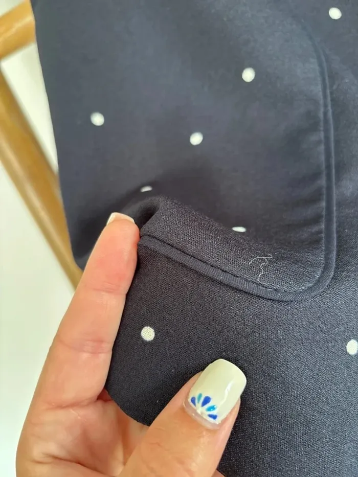 Short bleu marine à pois blanc Zara taille XS Fabriqué en Espagne Très bon état possibilité de faire un petit noeud Fermeture sur le côté 2 grandes poches (qq petits fils tirés, voir les 2 dernières photos) Short disponible en 2 exemplaires sur le compte