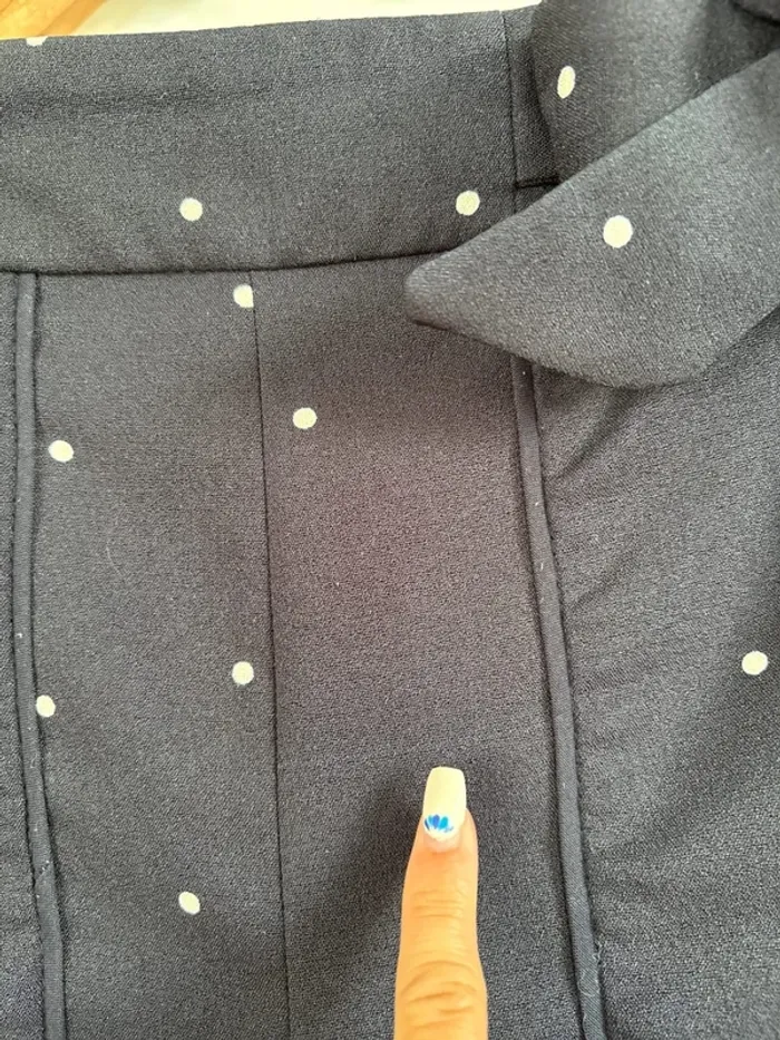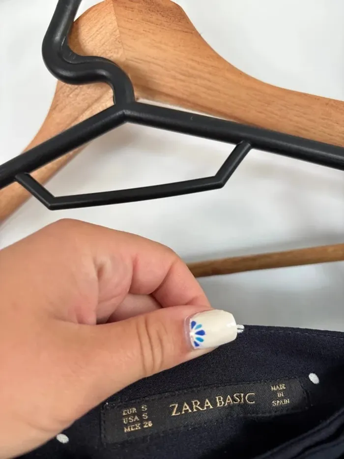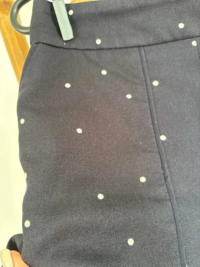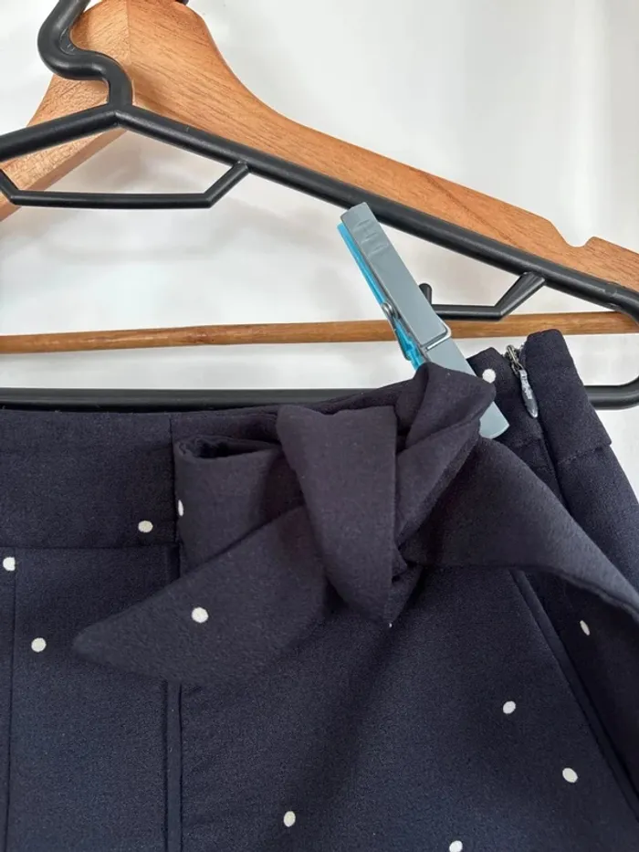 Short bleu marine à pois blanc 2 grandes poches quelques petits défauts (voir photo) mais très bon état Fermeture sur le côté Noeud Fabriqué en espagne Zara tallle XS