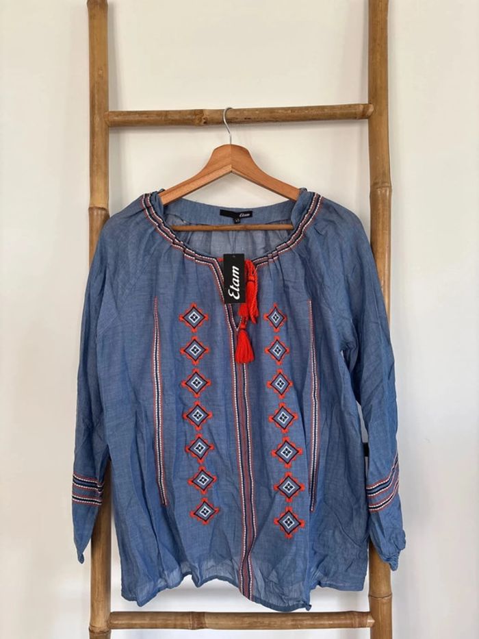 blouse bohème bleue etam taille 38 - photo numéro 1