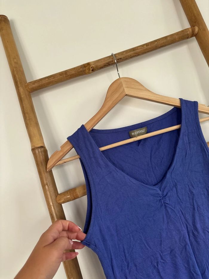 Débardeur bleu violet (la couleur ressort plus foncée sur les photos) In extenso taille M Très bon état Appartenant à une personne fumeuse, je l’ai lavé mais il faudra le relaver